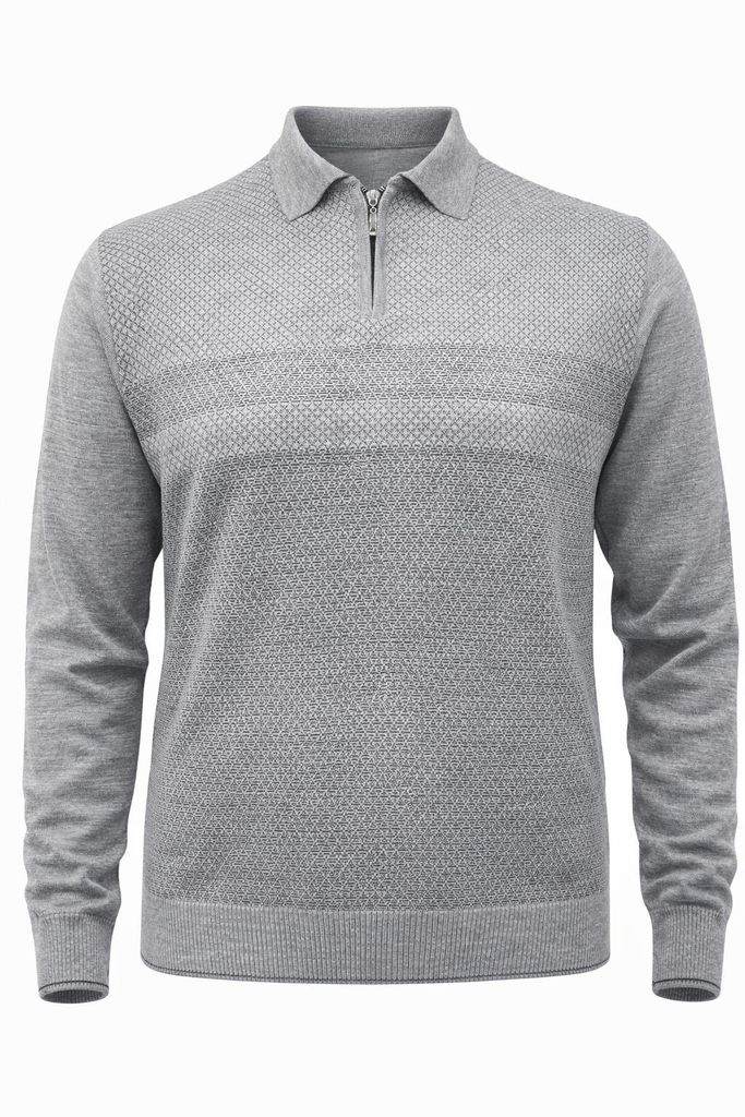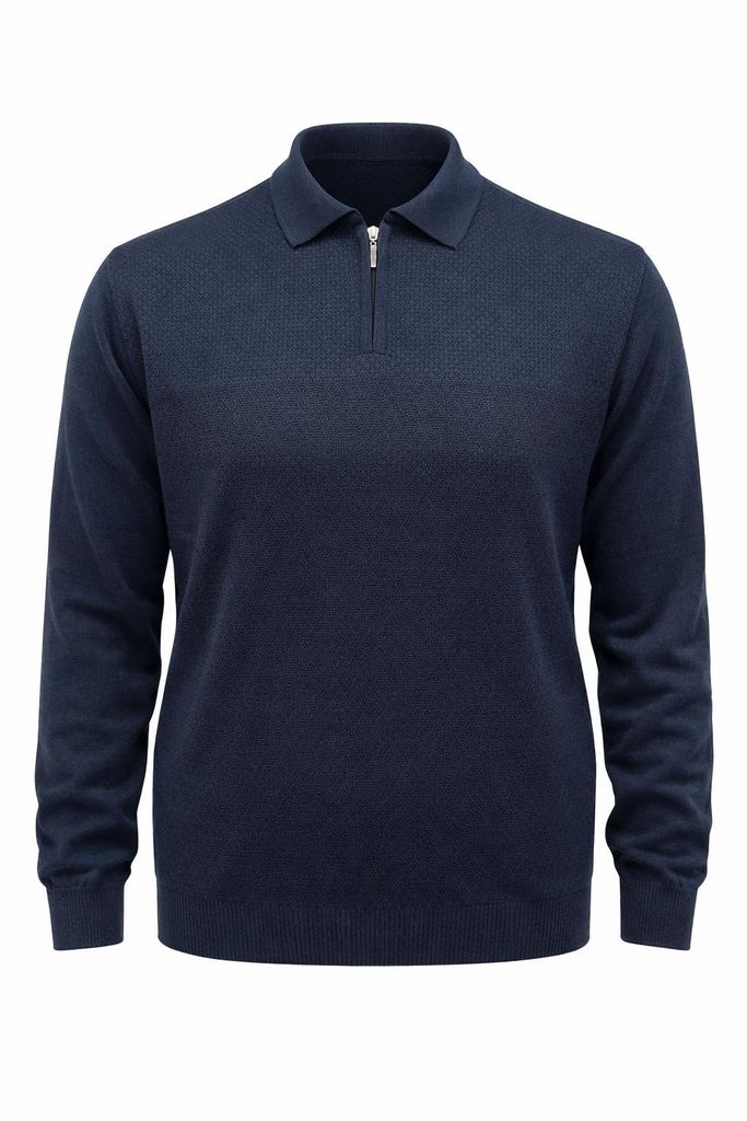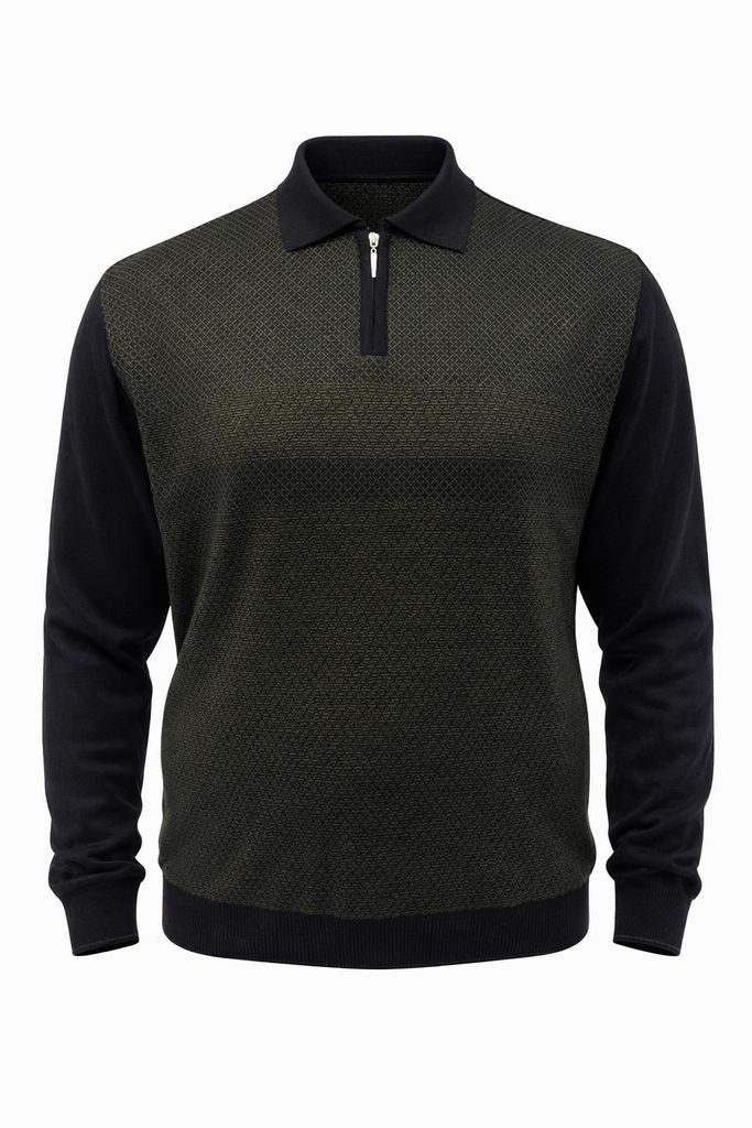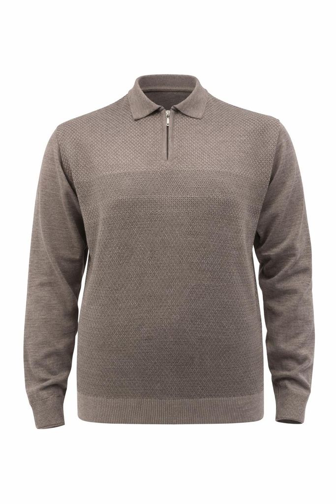 %50 yün %50 akrilik karışımlı, polo yaka ve yarım fermuarlı triko kazak. Rahat kalıbı, yumuşak dokusu ve 430 gram ağırlığıyla büyük beden erkekler için sıcak, konforlu ve şık bir tercihtir.