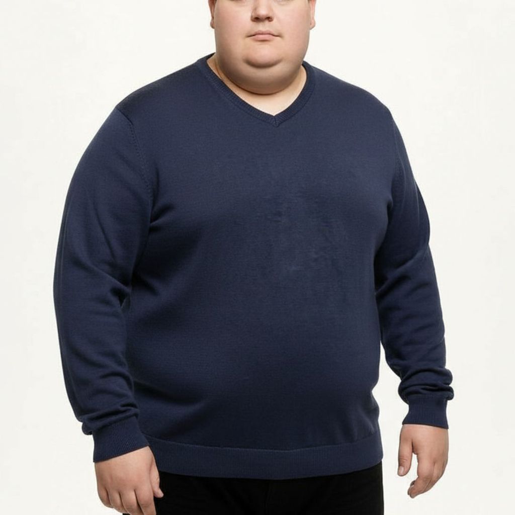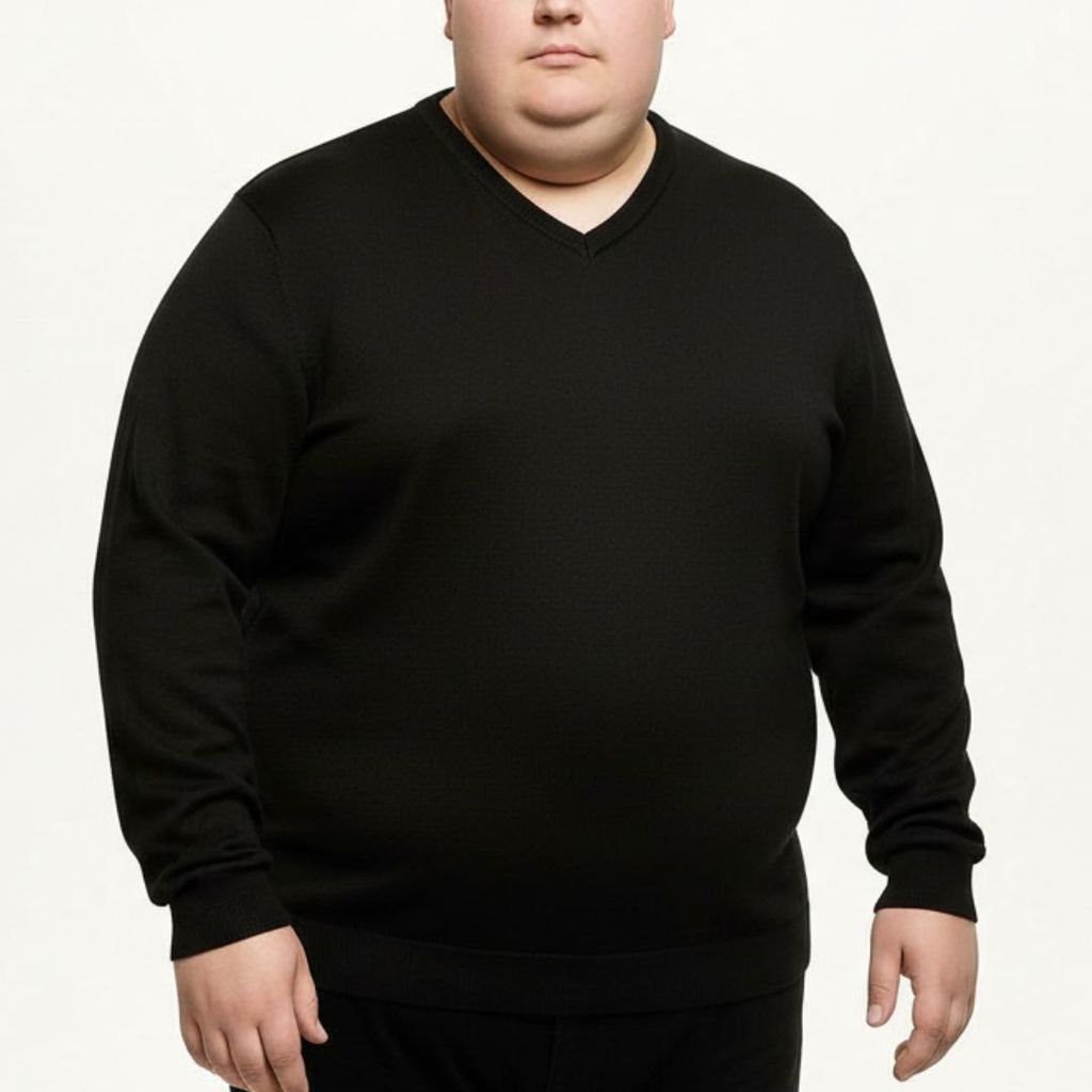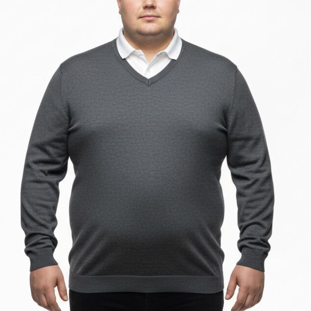 Yumuşak dokulu, nefes alan pamuk-akrilik karışımı kumaşıyla konforlu bir kullanım sunan V yaka antrasit triko kazak. 3XL-6XL arası battal beden uyumuyla günlük ve klasik kombinler için idealdir.