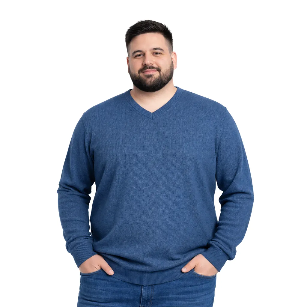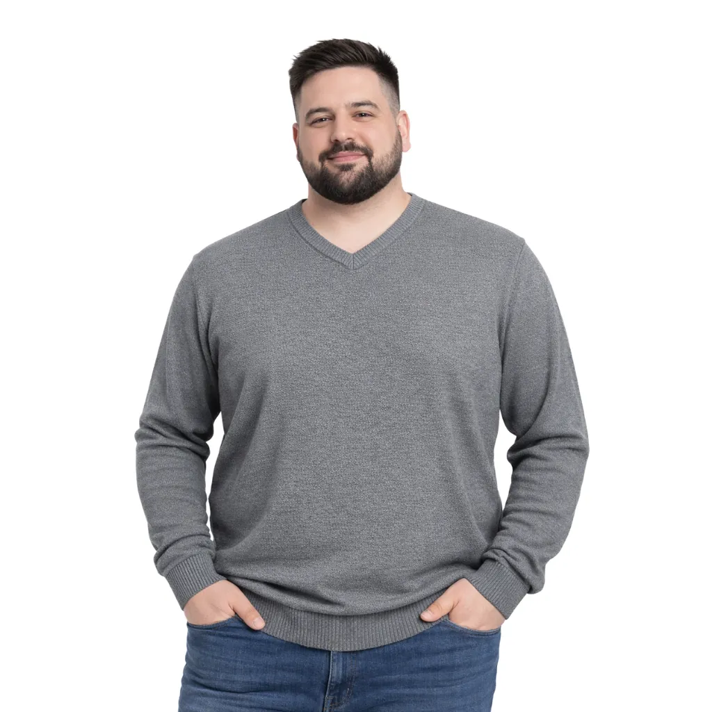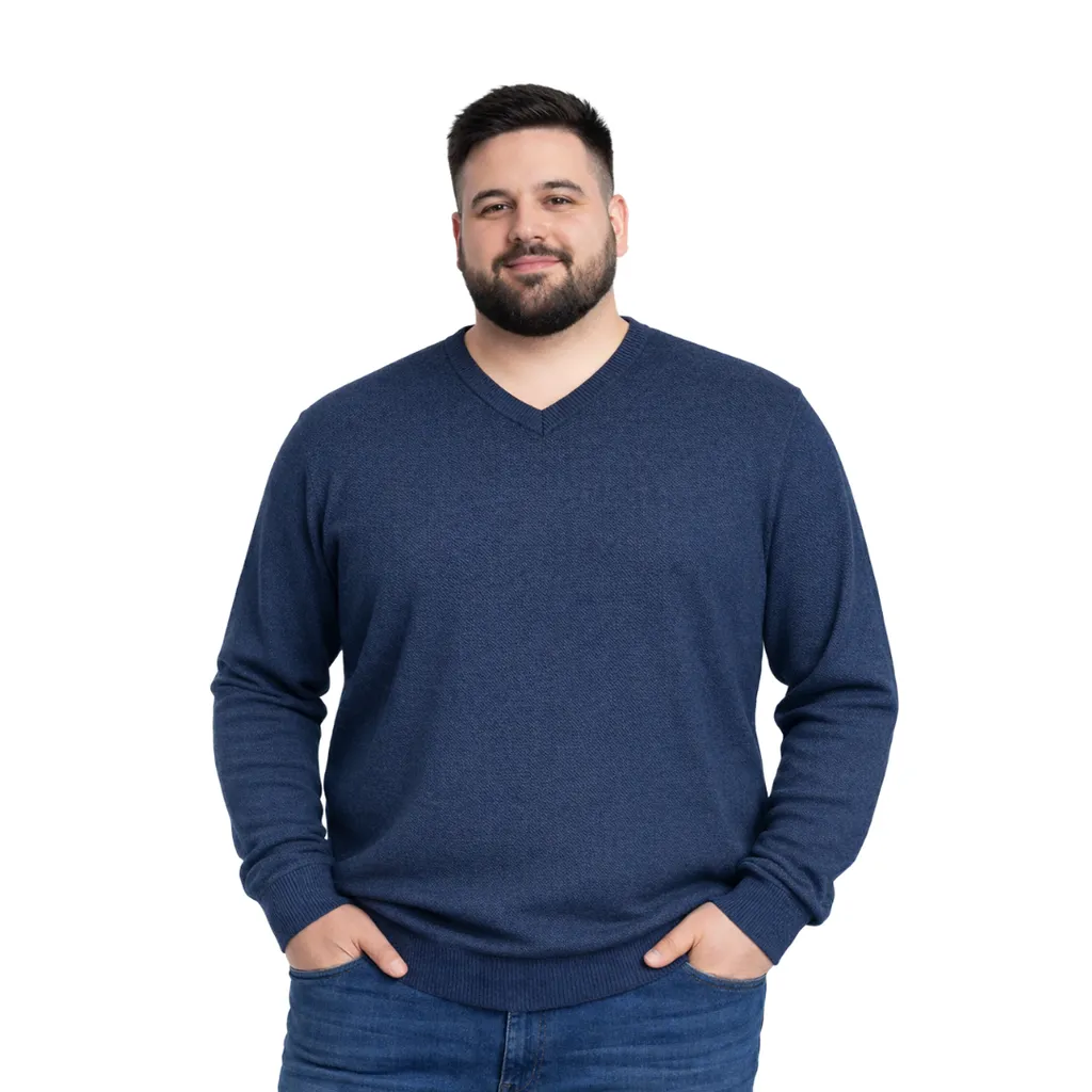Şık ve sıcak tutan %50 yün %50 akrilik V yaka erkek triko kazak. 3XL-6XL büyük beden aralığıyla rahat kalıp ve kaliteli dokusuyla konforlu kullanım sunar