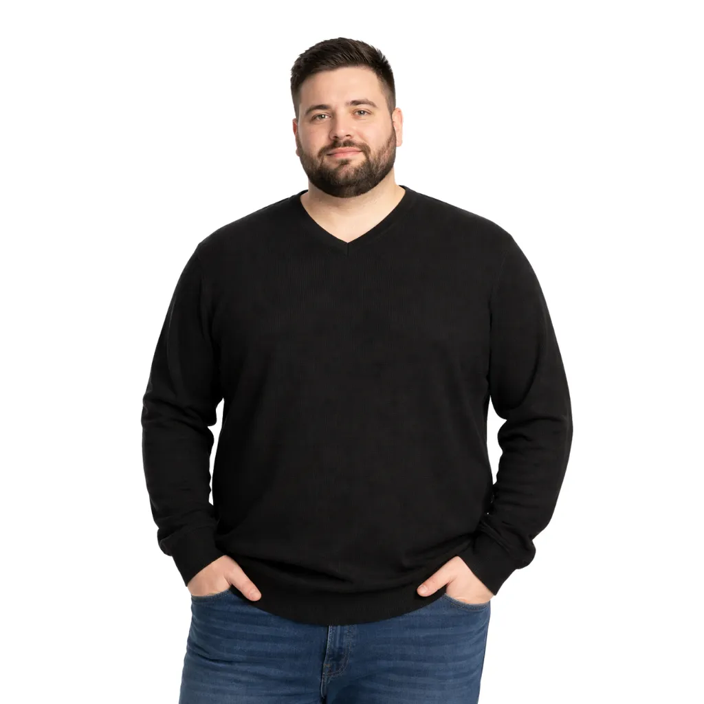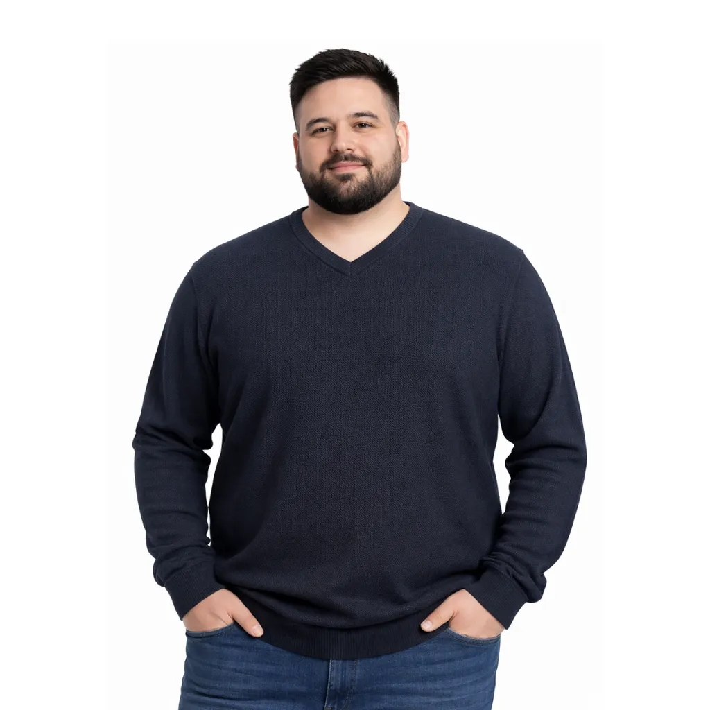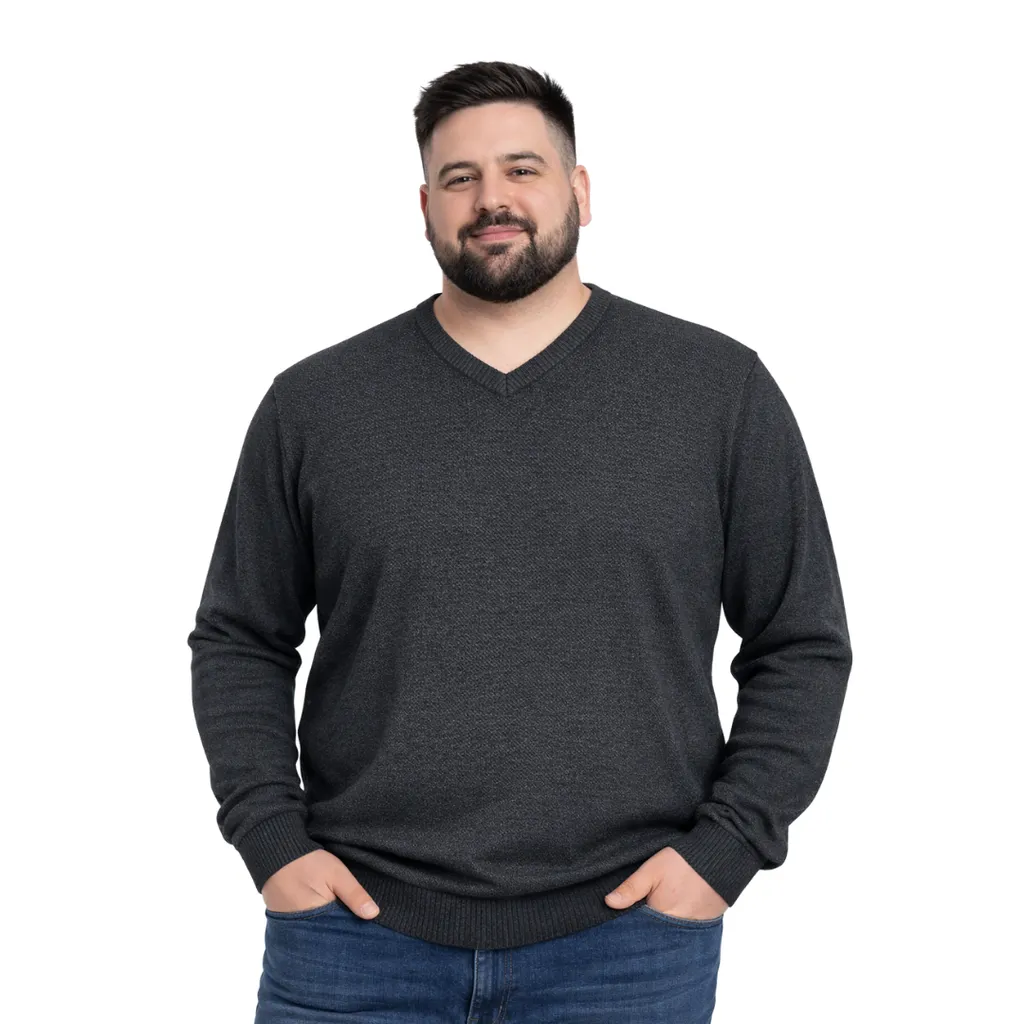 Şık ve sıcak tutan %50 yün %50 akrilik V yaka erkek triko kazak. 3XL-6XL büyük beden aralığıyla rahat kalıp ve kaliteli dokusuyla konforlu kullanım sunar