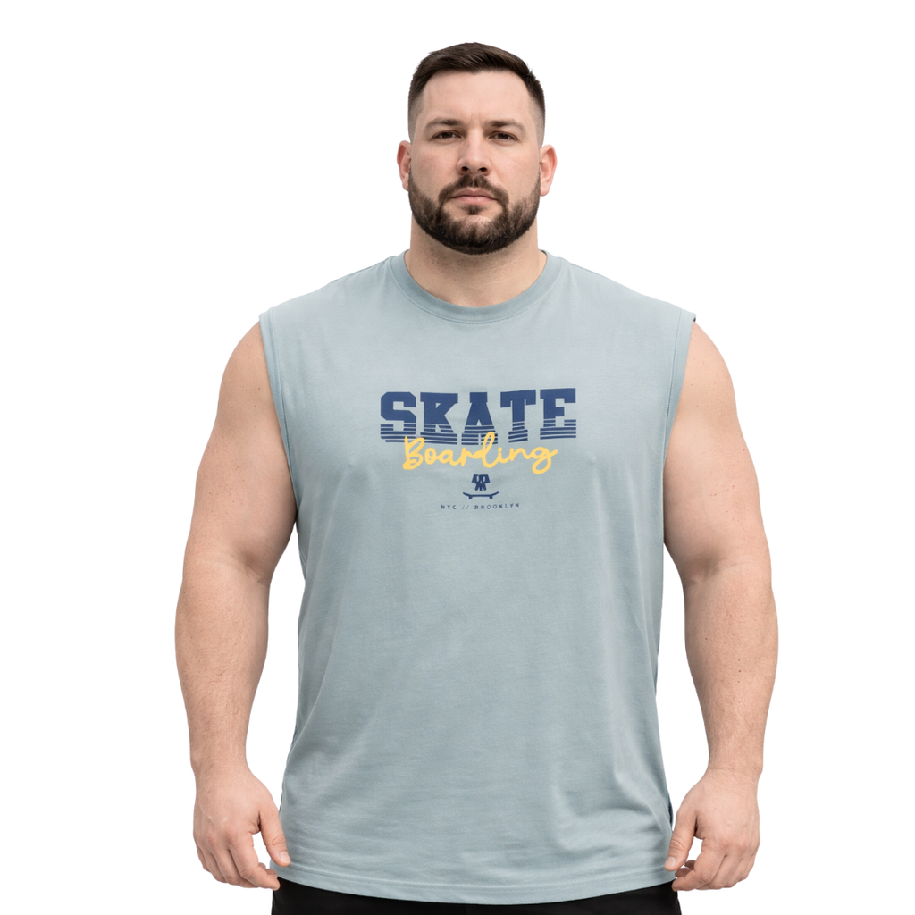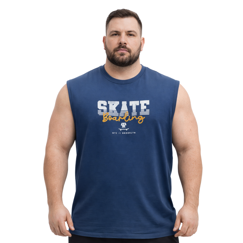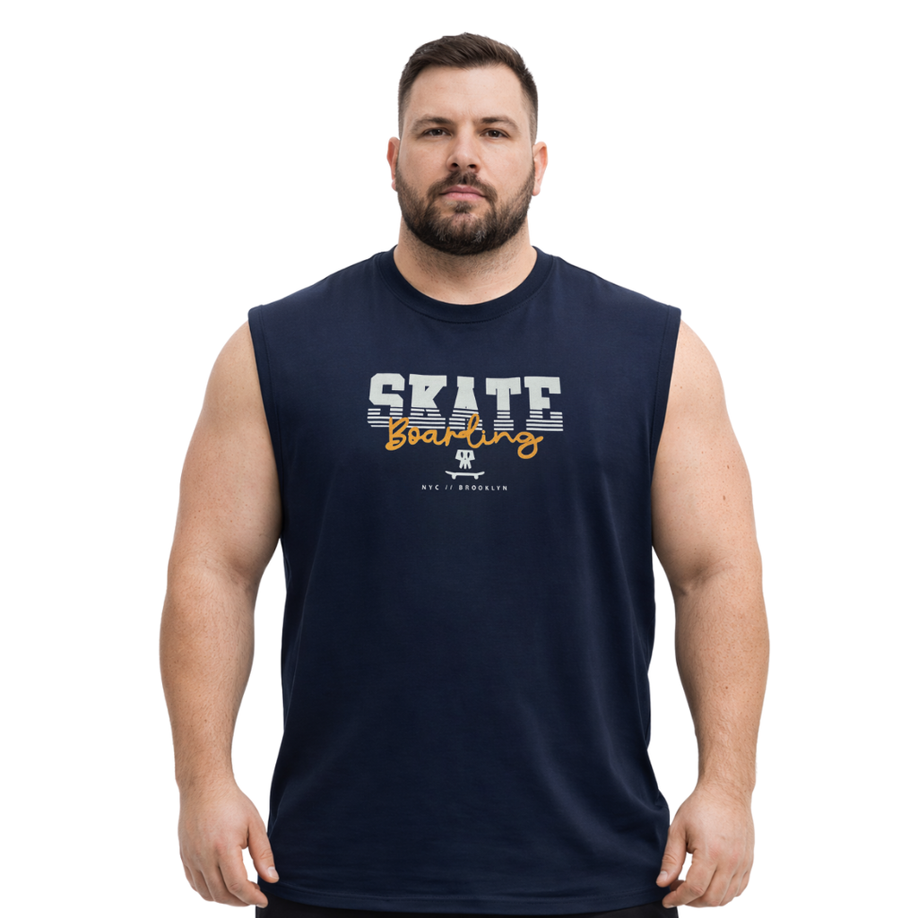 Rahat kesimi ve modern skate baskısıyla günlük kullanım için ideal siyah sıfır kol büyük beden tişört.