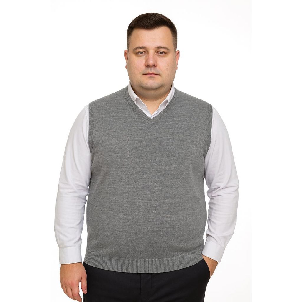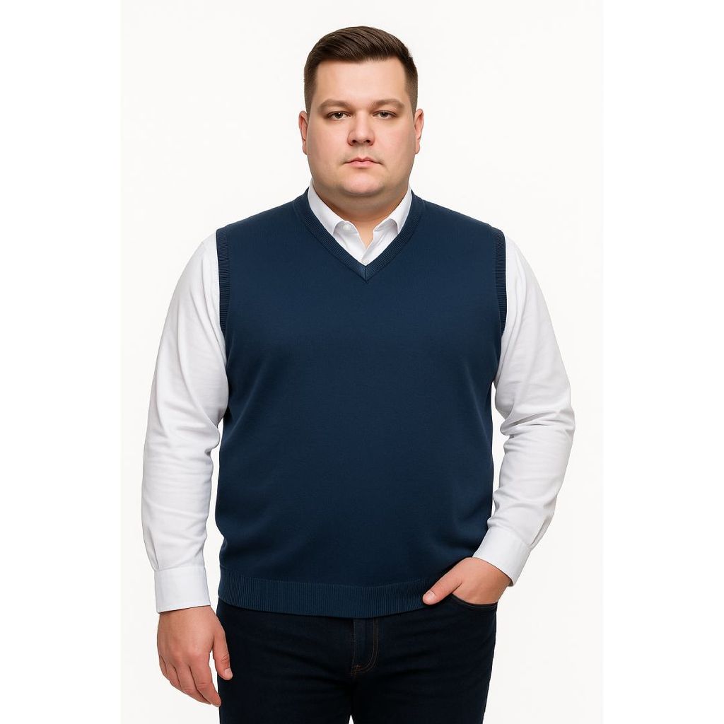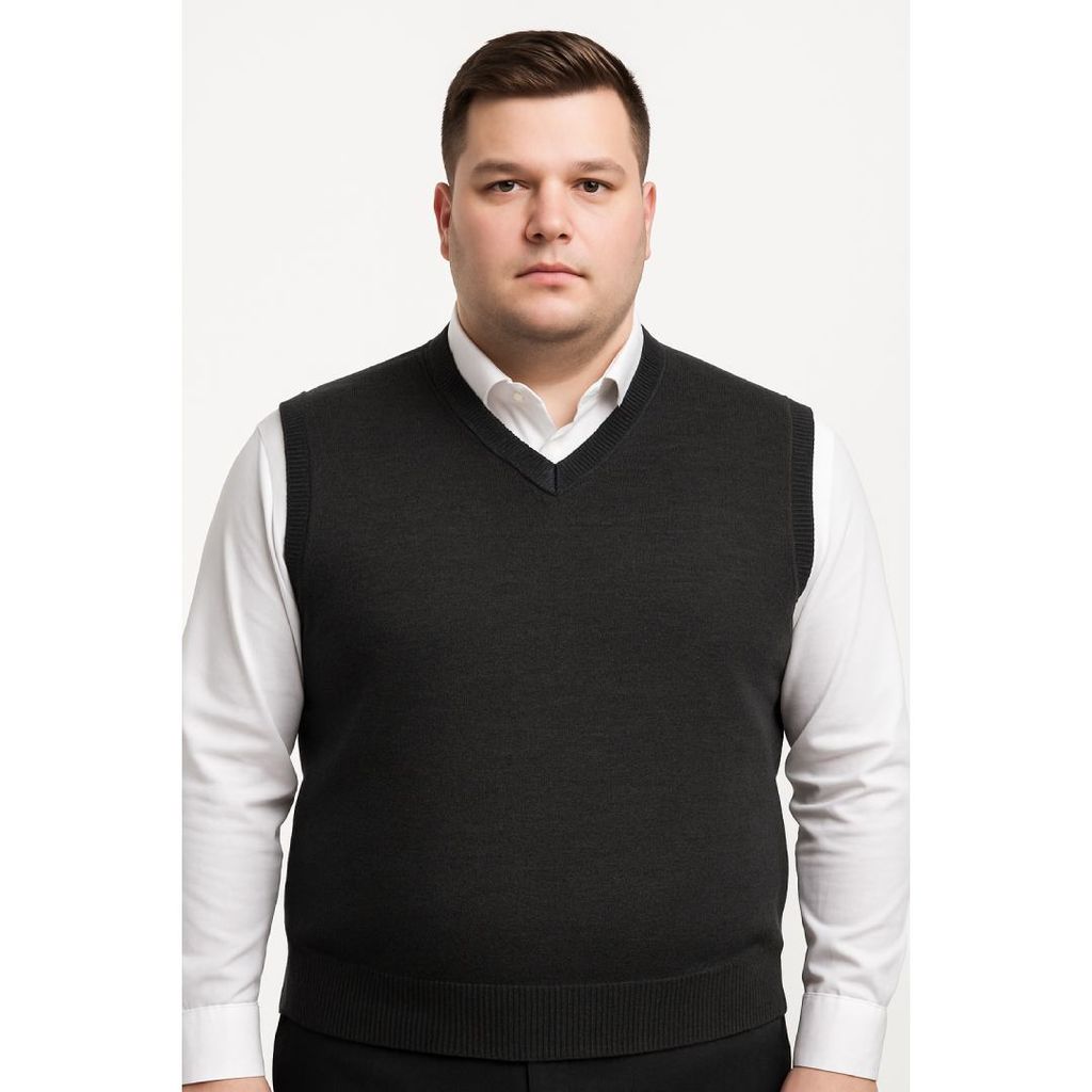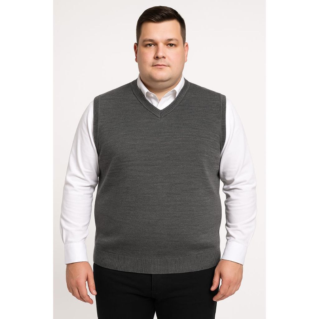 Erkek büyük beden V yaka triko süveter. Yumuşak dokulu, %50 yün %50 akrilik karışımı ile sıcak tutar, konforlu ve şık bir görünüm sunar.