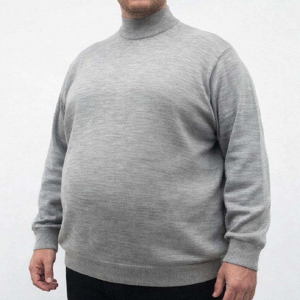 Füme renkte, yarım balıkçı yaka tasarımıyla konfor ve şıklığı birleştiren büyük beden erkek triko kazak. %50 yün, %50 akrilik kumaş karışımı ile sıcak tutar, yumuşak dokusuyla gün boyu rahatlık sağlar.