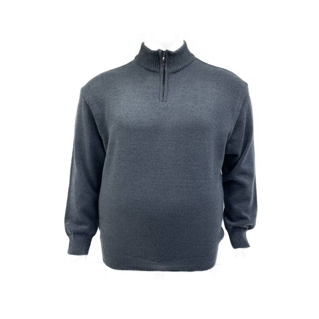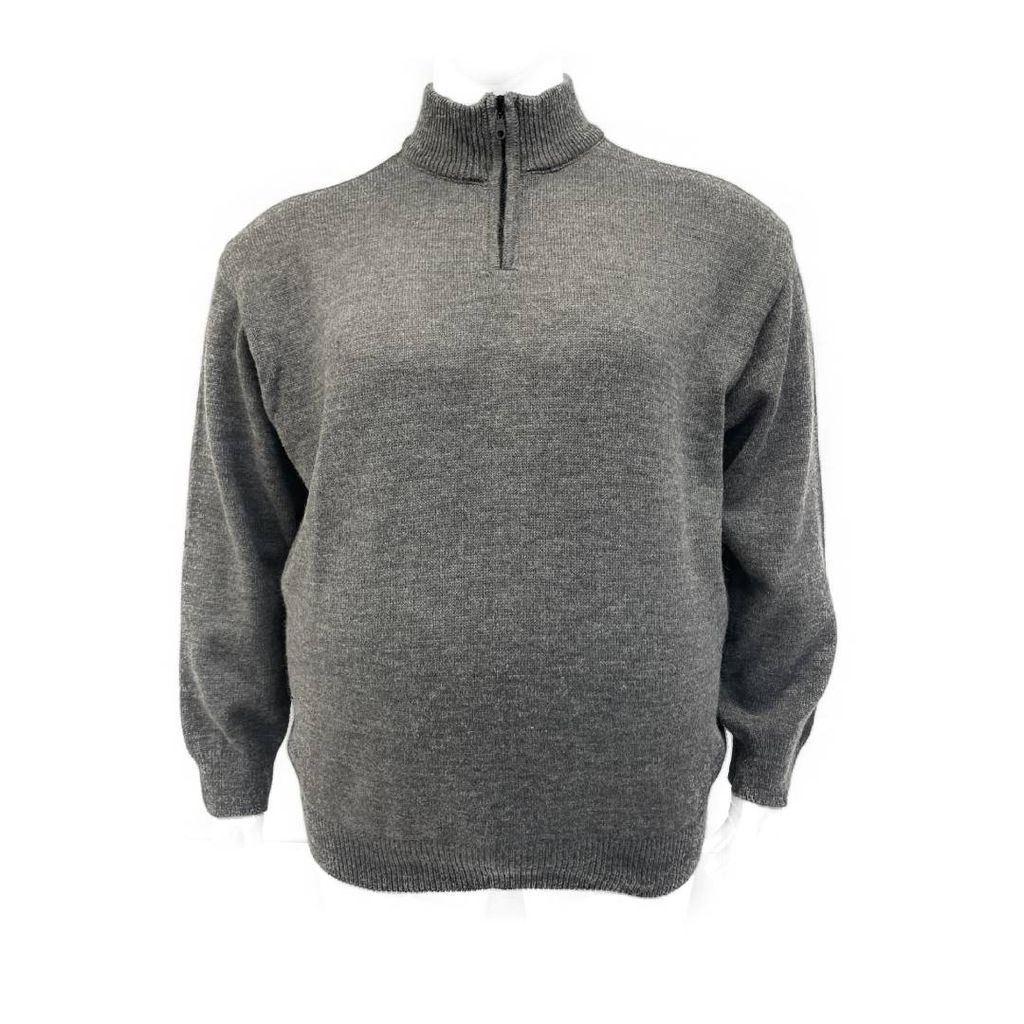 %70 yün %30 akrilik gri fermuarlı dik yaka triko. 3XL–6XL battal beden aralığında.