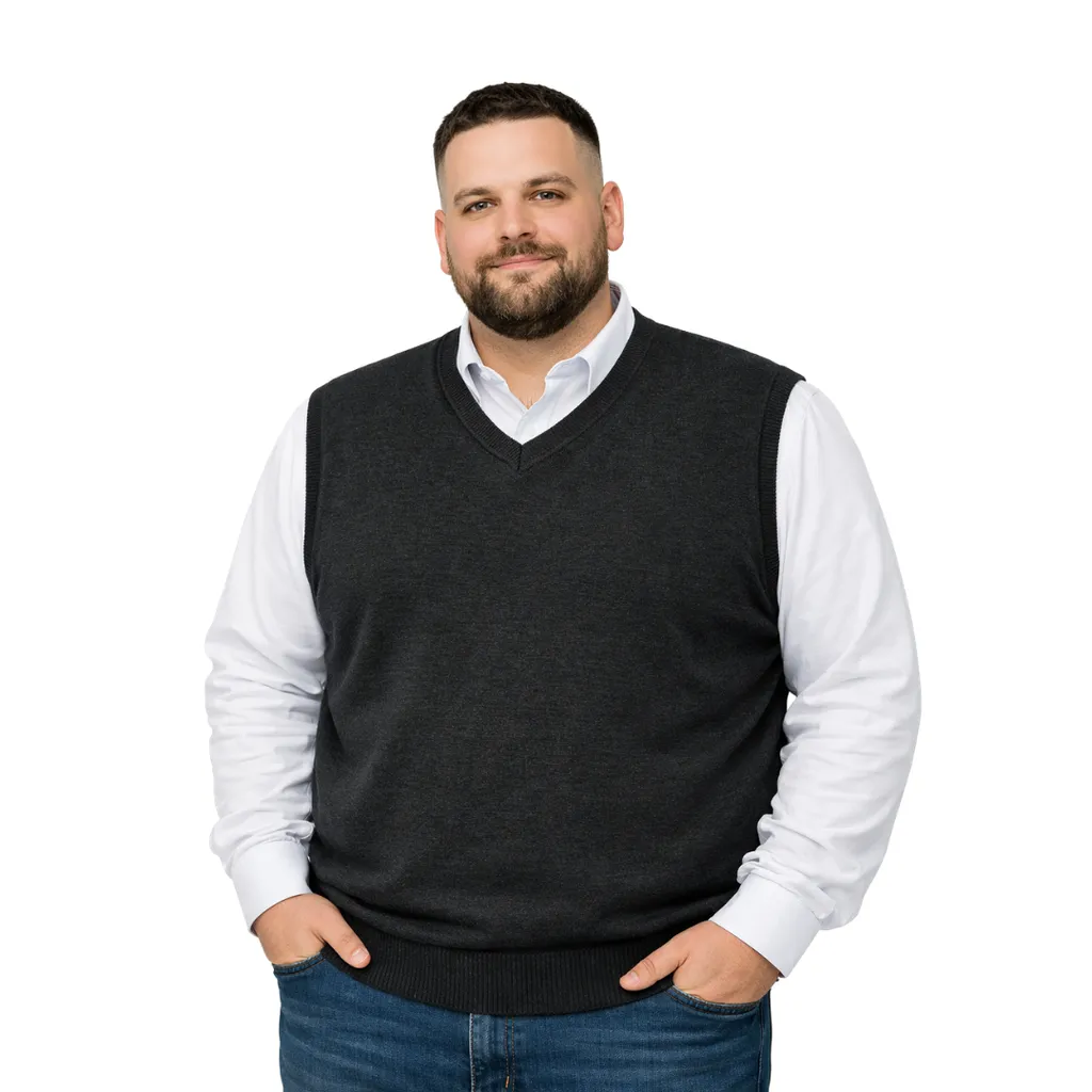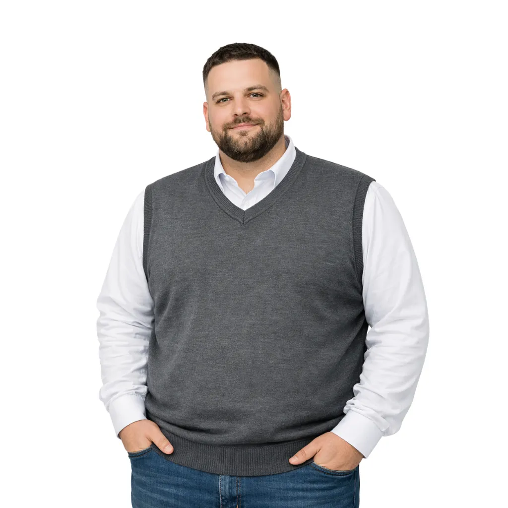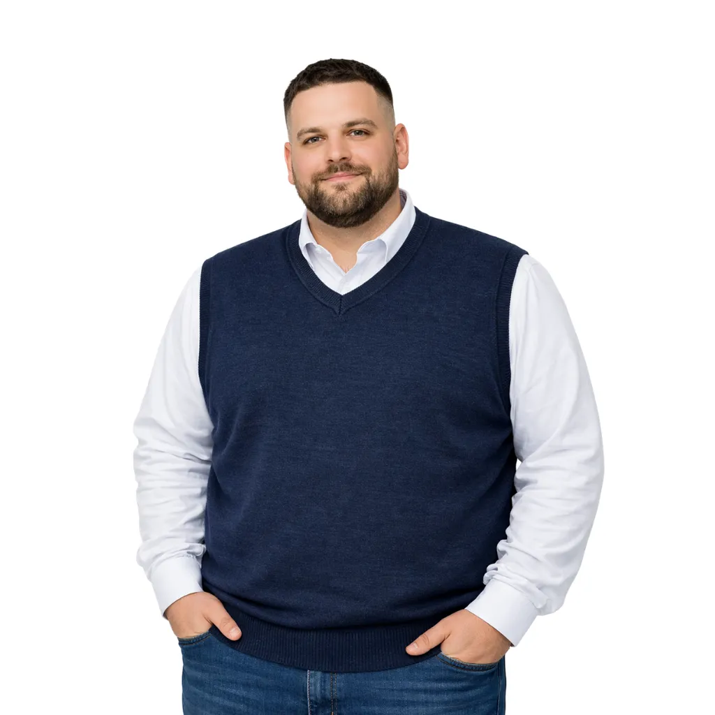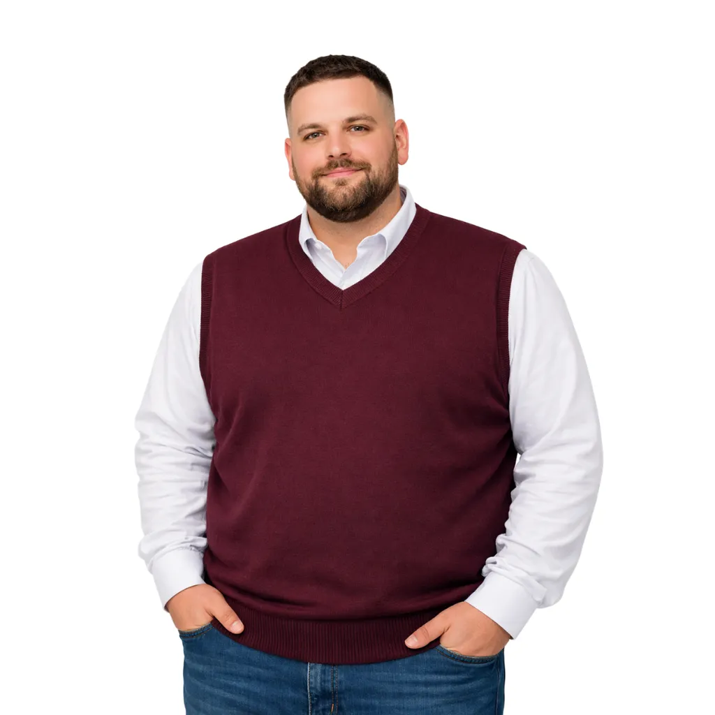 Erkek büyük beden V yaka triko süveter. Yumuşak dokulu, %50 yün %50 akrilik karışımı ile sıcak tutar, konforlu ve şık bir görünüm sunar.