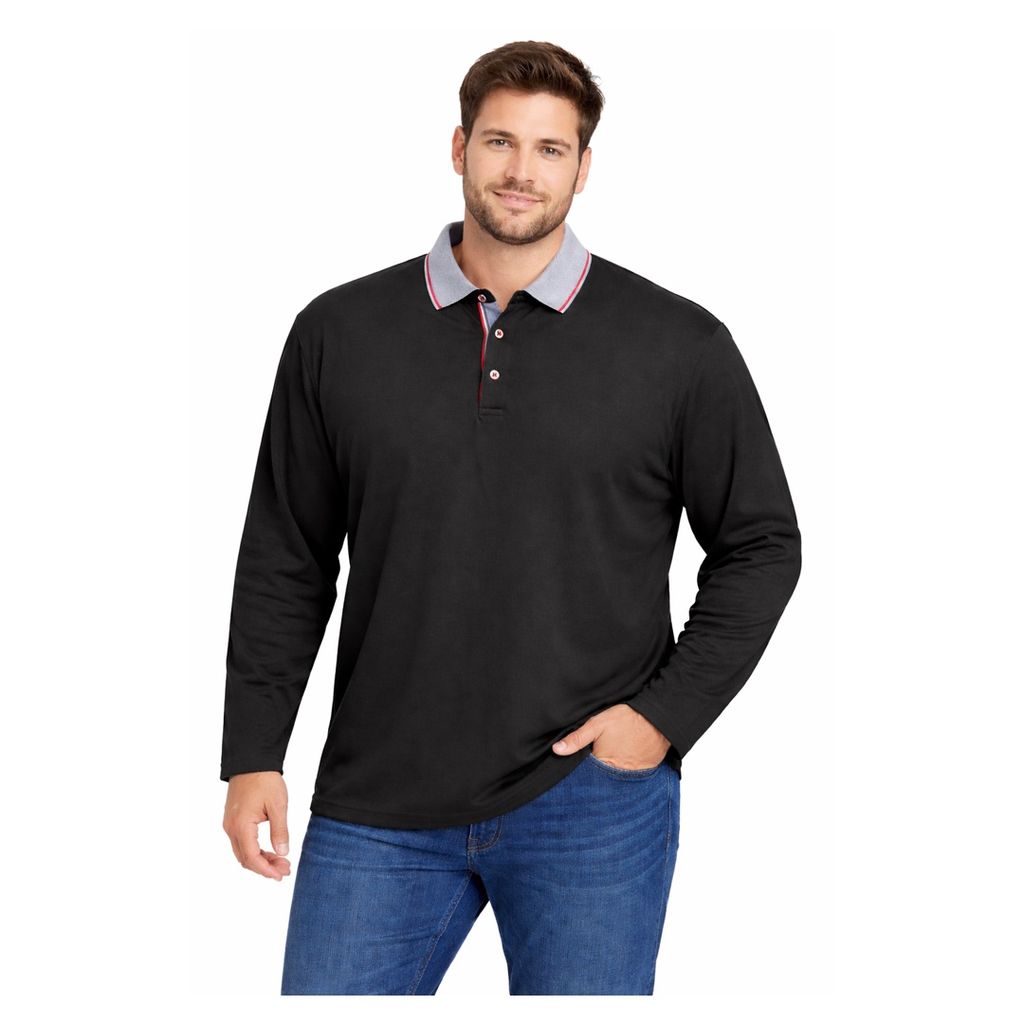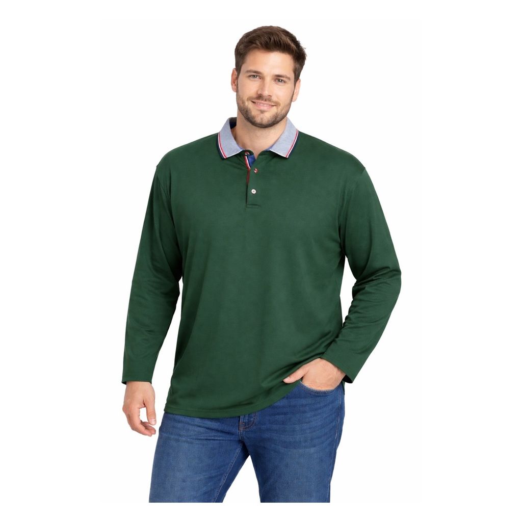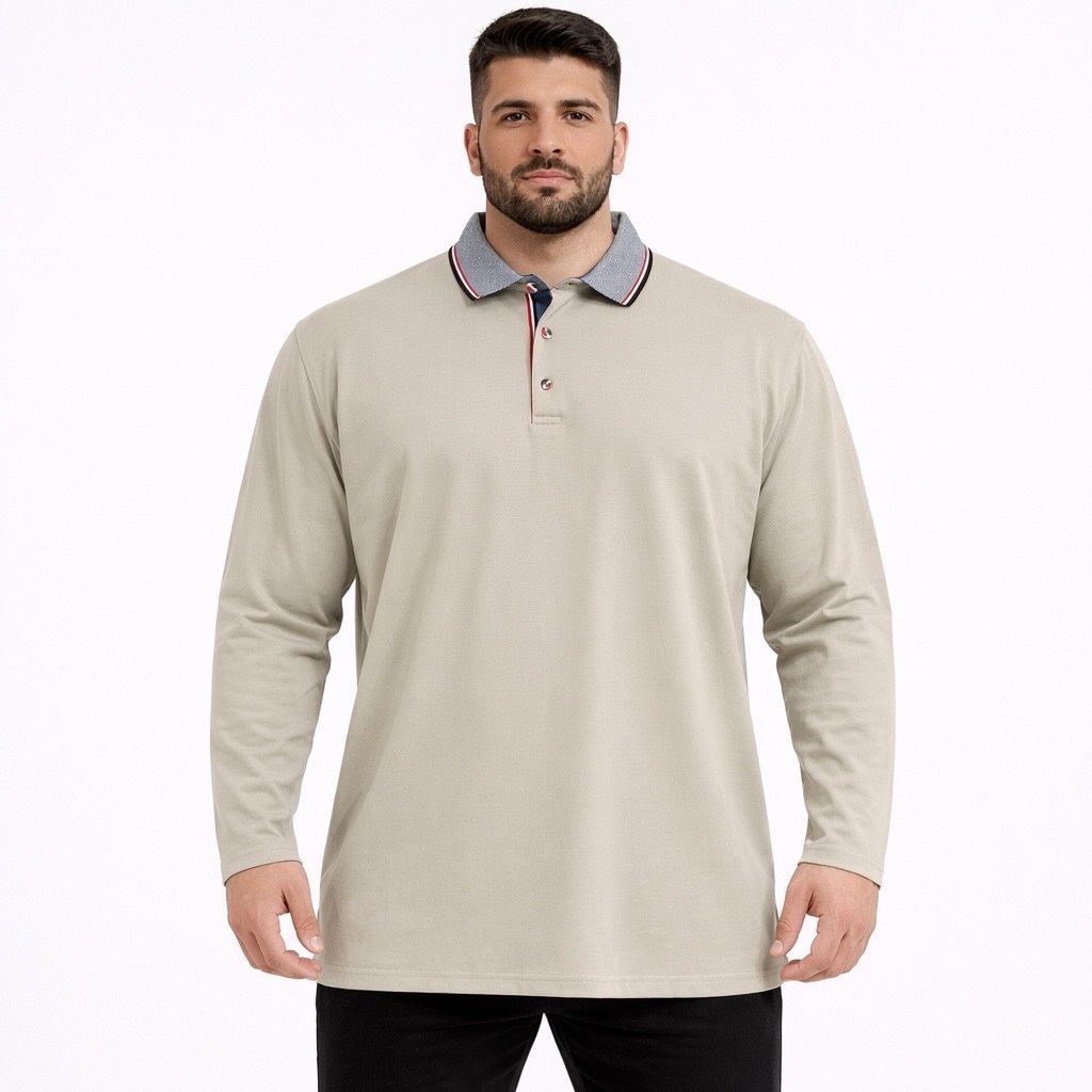 İndigo renk, %100 pamuk kumaştan üretilmiş uzun kollu polo yaka tişört. Büyük beden erkekler için şık ve rahat bir seçimdir.
