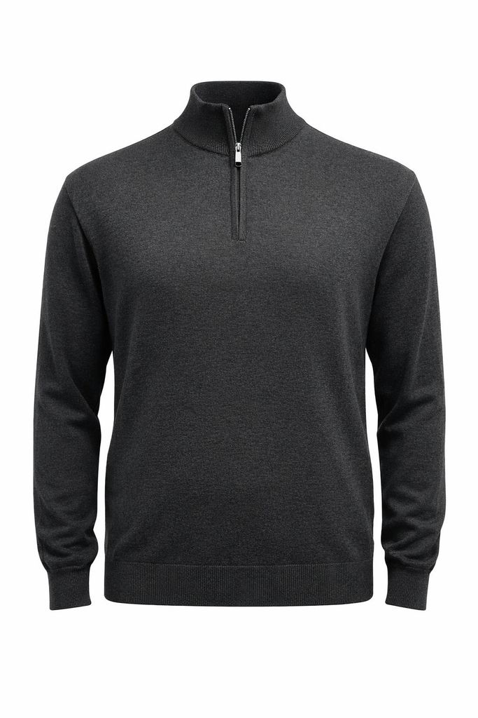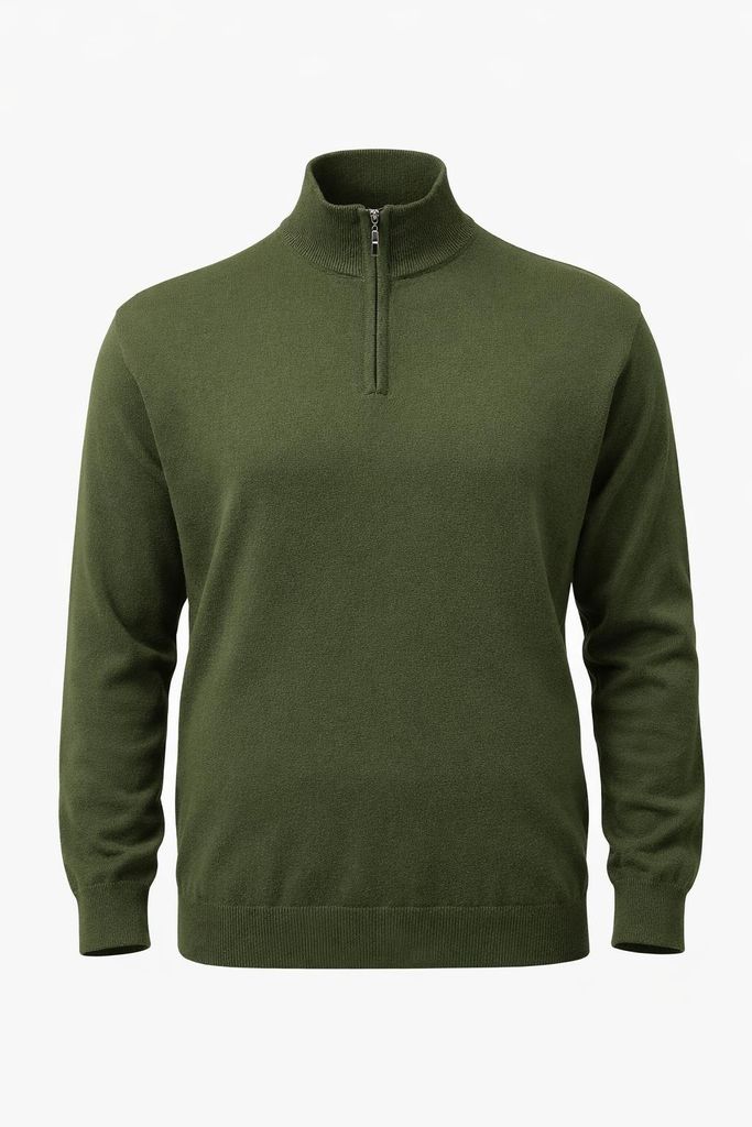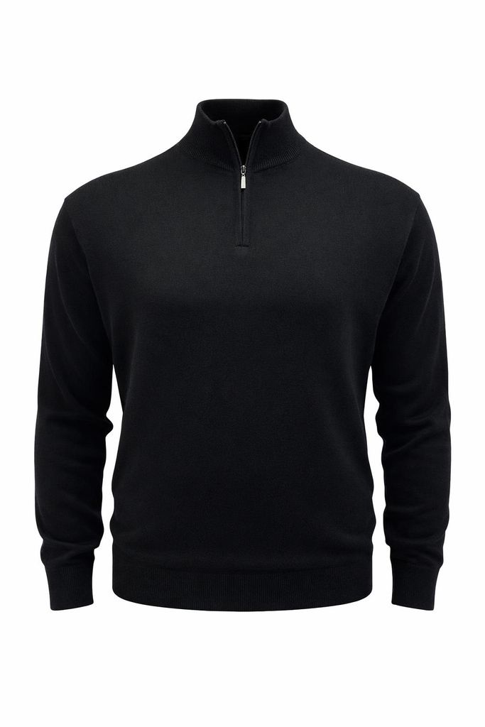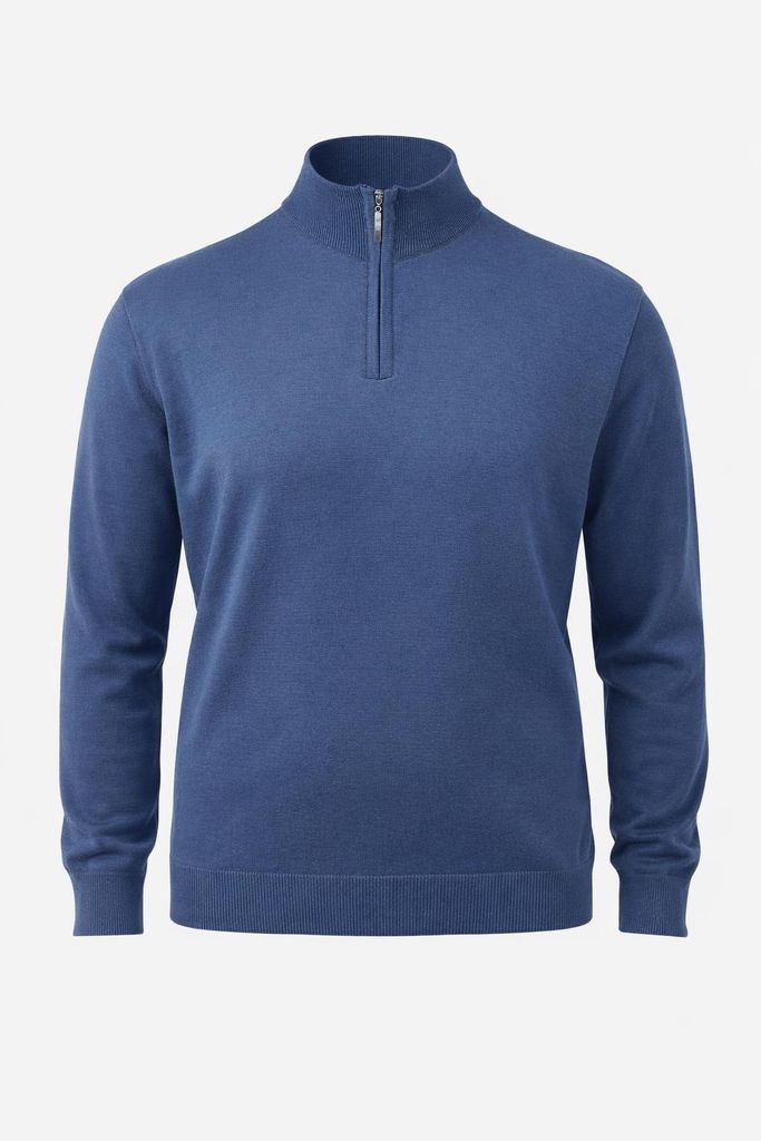 Koyu İndigo Fermuarlı Dik Yaka Pamuklu Kazak 0116