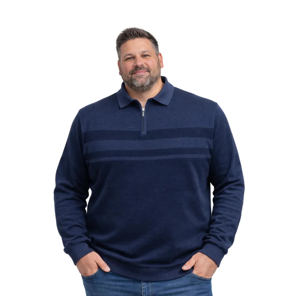 <p>Lacivert polo yaka fermuarlı triko kazak, günlük kullanımda konforu ve şıklığı bir arada sunar. Yumuşak dokulu triko yapısı sayesinde gün boyu rahatlık sağlar. Polo yaka ve fermuar detayı, klasik görünümü modern bir çizgiyle tamamlar.</p><p>Büyük beden erkekler düşünülerek tasarlanan bu model, vücuda yapışmayan kalıbı ile rahat bir kullanım sunar. Günlük kombinlerde, ofis stilinde veya serin havalarda tek başına şık bir parça olarak tercih edilebilir.</p><p>Beden Aralığı: 3XL – 6XL<br>Kumaş: Triko<br>Yaka: Polo Yaka – Fermuarlı<br>Renk: Lacivert</p>