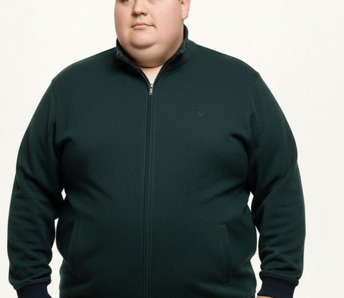 Yumuşak dokulu Selanik kumaştan üretilmiş, fermuarlı, lacivert ve dik yaka tasarımlı büyük beden hırka. Günlük kullanımda sıcak tutar ve şık görünüm sağlar.