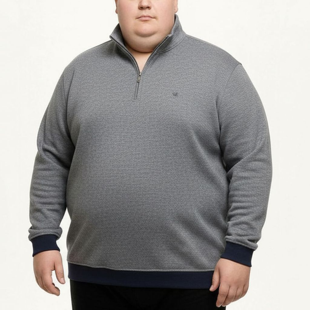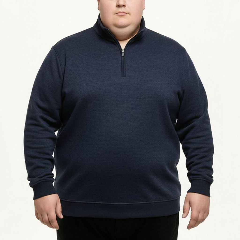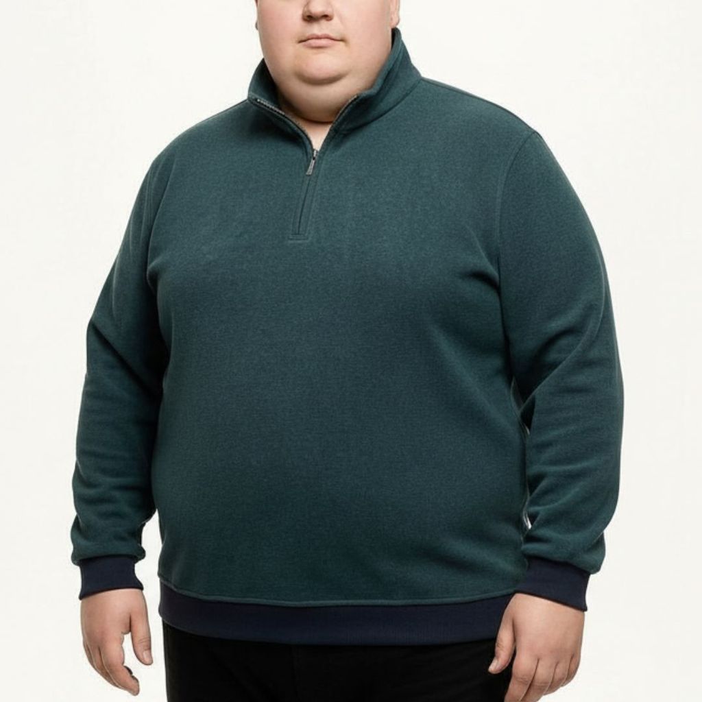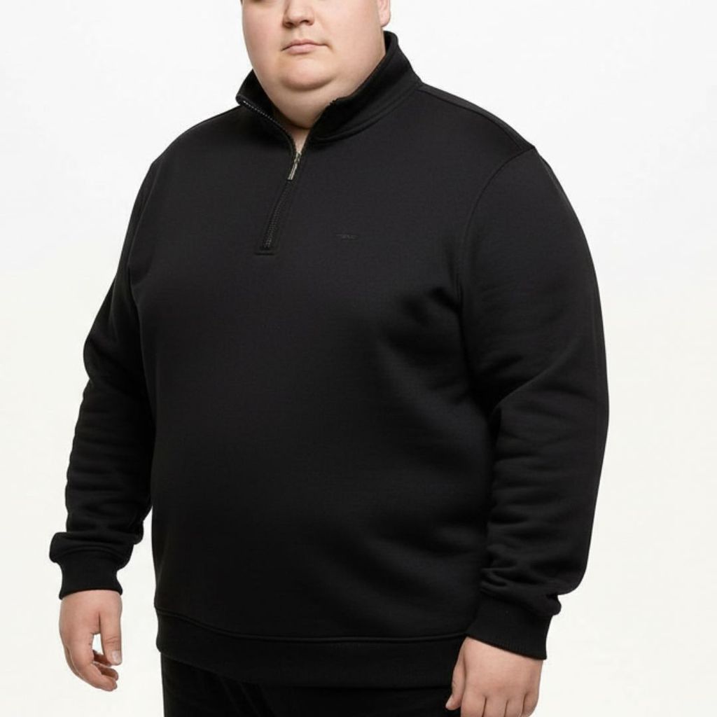 %60 pamuk %40 polyester karışımlı Selanik kumaş. Rahat kalıp, polo yaka tasarım. Büyük beden erkekler için konforlu ve şık bir sweatshirt modeli.