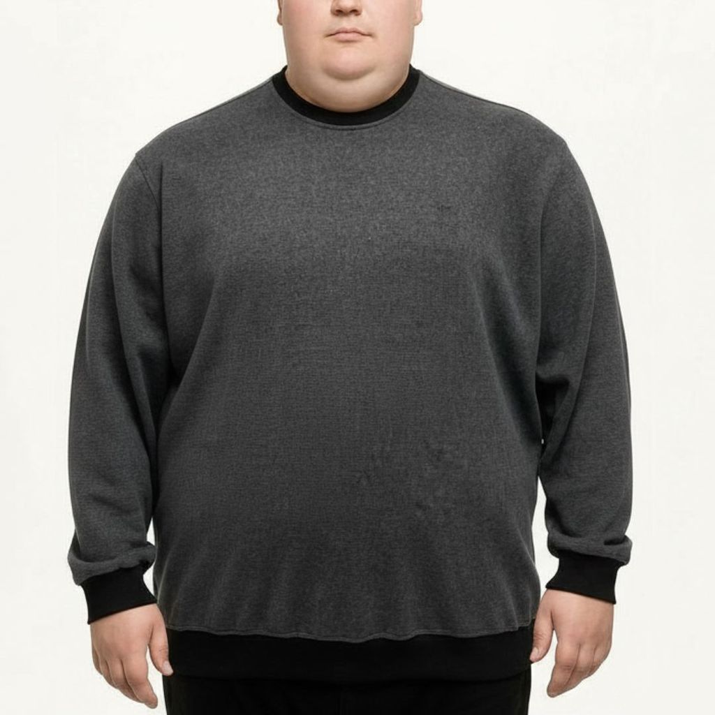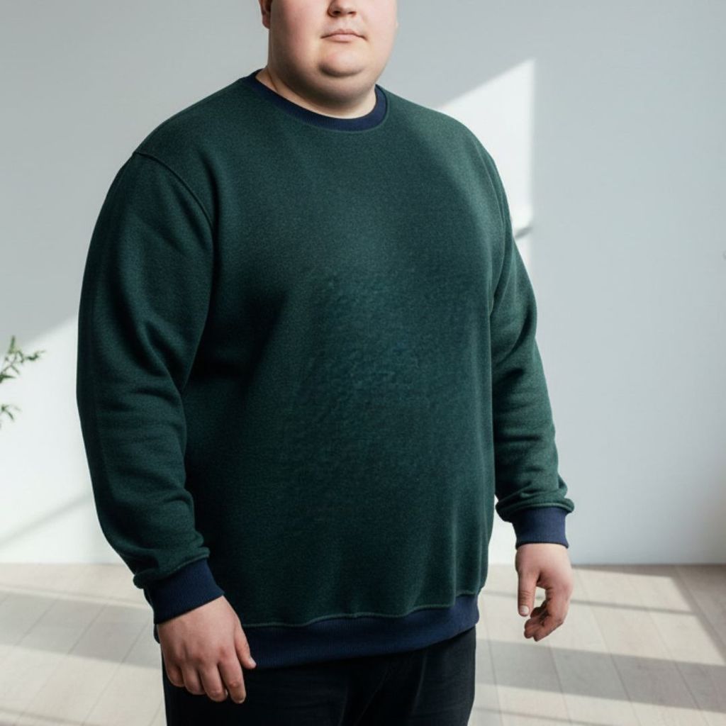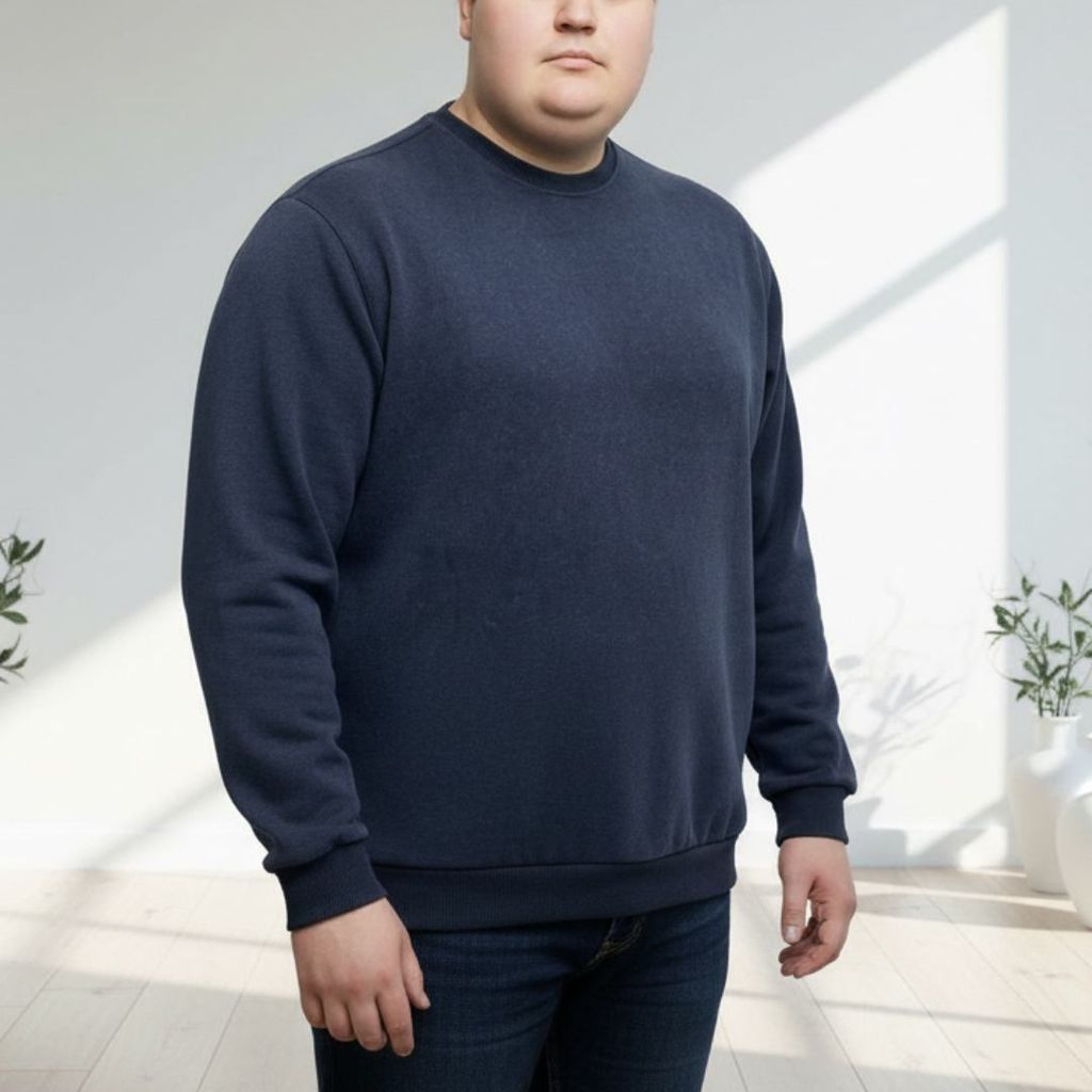 %60 pamuk %40 polyester Selanik kumaş. Rahat kesim bisiklet yaka sweatshirt modeli, büyük beden erkekler için özel üretimdir.