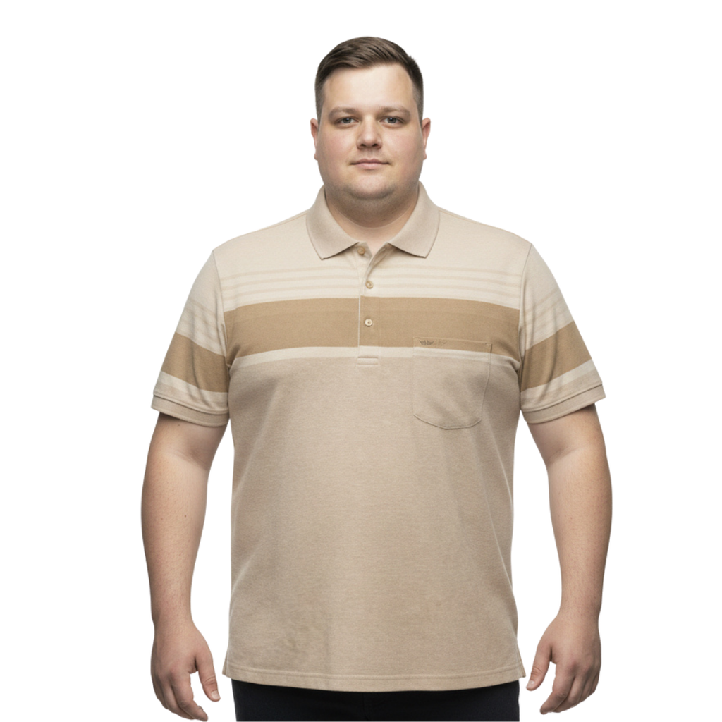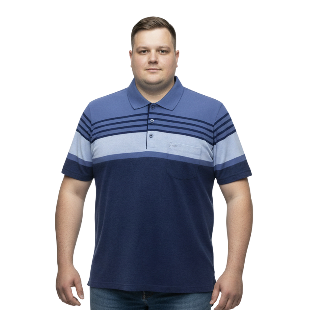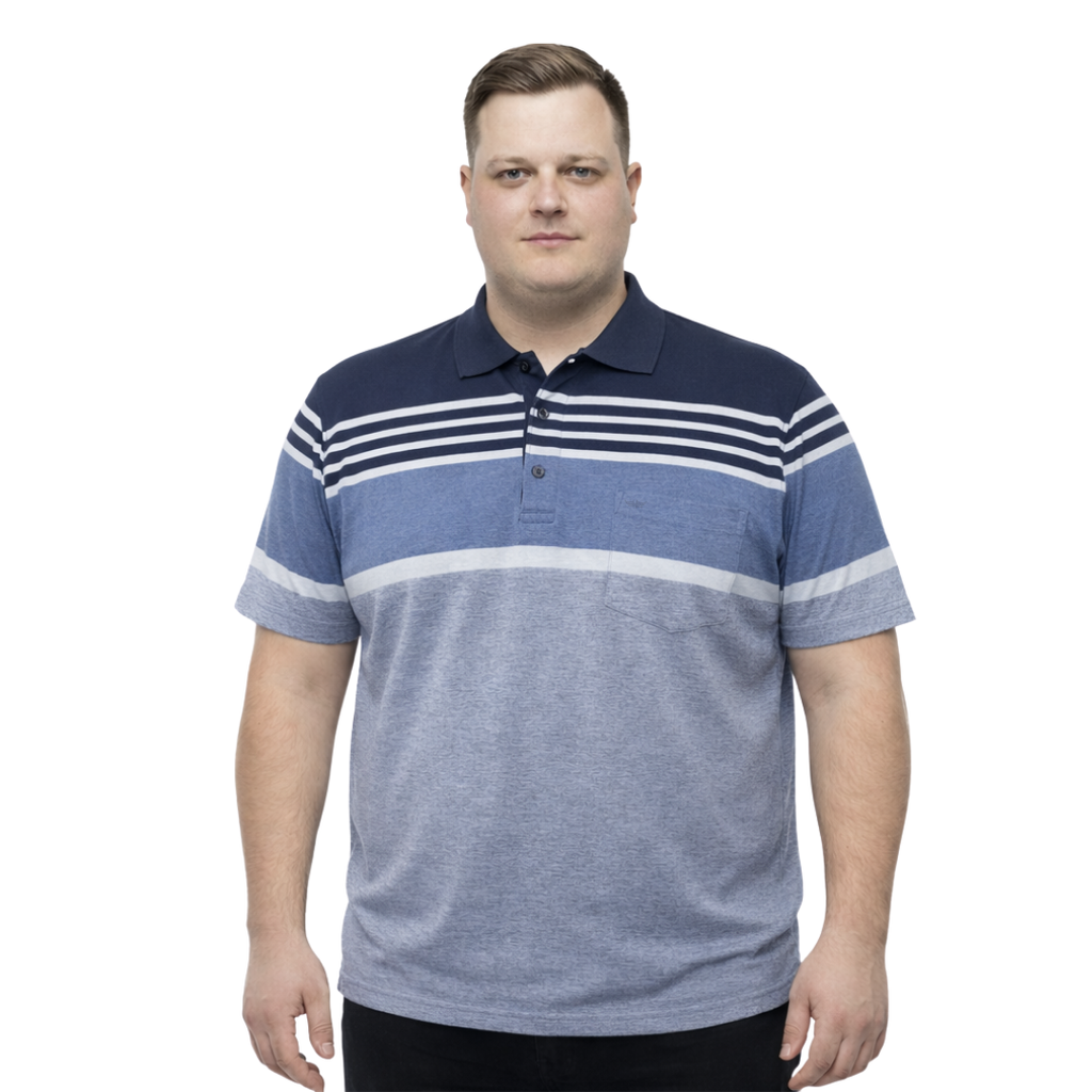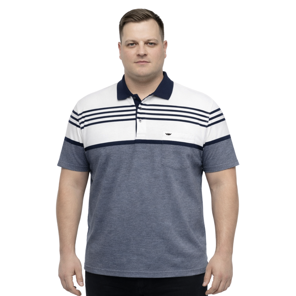 Modern çizgi detayları ve rahat kalıbıyla büyük beden erkekler için tasarlanan melanj lacivert polo yaka tişört.