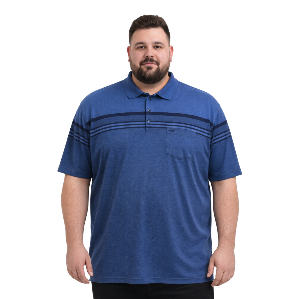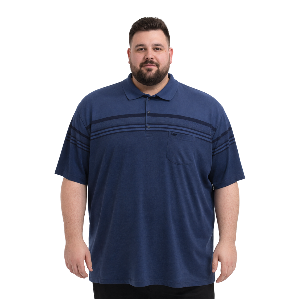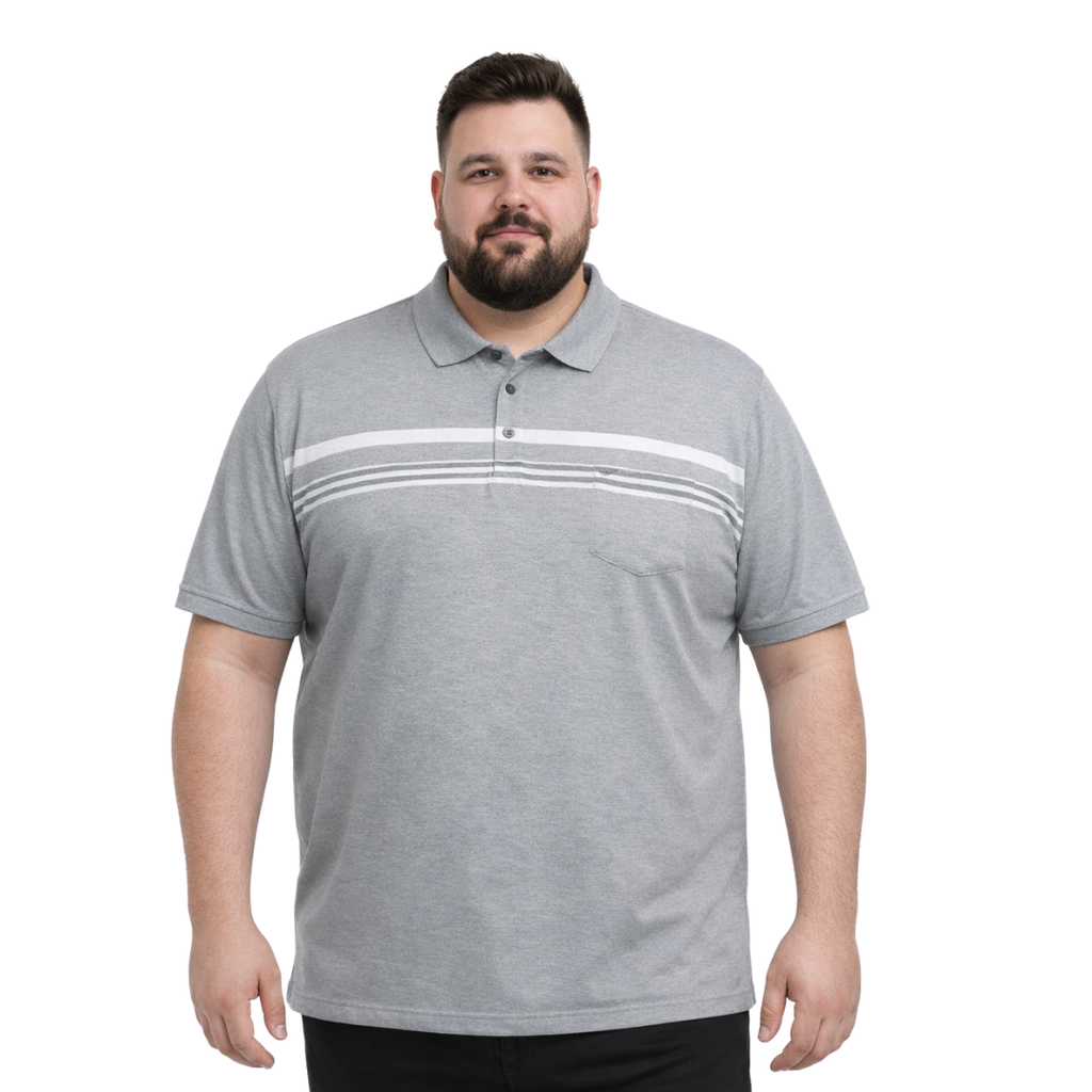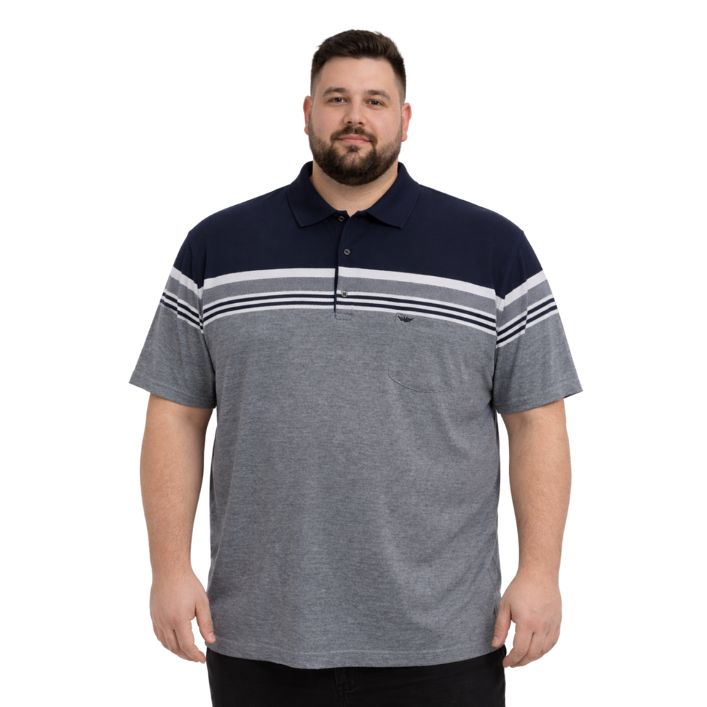 Melanj siyah polo yaka kısa kollu block tişört. 5XL-8XL arası büyük beden, rahat kalıp ve modern çizgi detaylı tasarım.