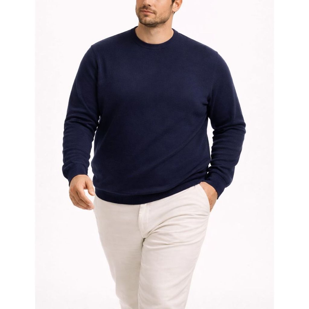 Cotonel serisi indigo bisiklet yaka siyah triko kazak. %50 pamuk, %50 akrilik kumaşıyla yumuşak dokulu, rahat ve konforlu kullanım sunar. 3XL-6XL arası battal beden uyumuyla şık ve sade tarz.