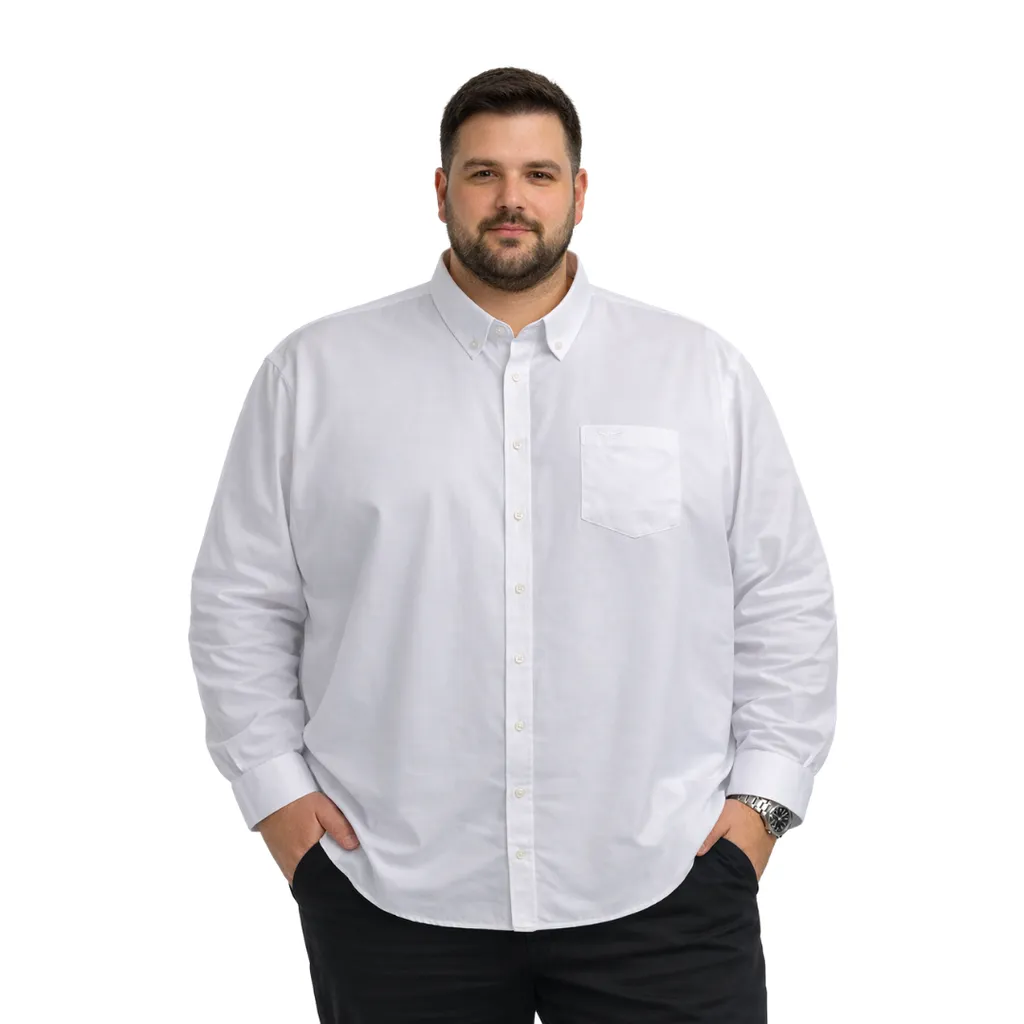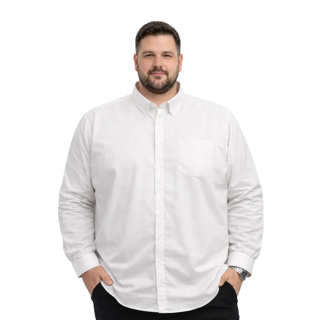 Siyah Oxford gömlek, klasik ve şık görünümüyle büyük beden erkekler için özel olarak tasarlandı. 3XL’den 6XL’e kadar geniş beden aralığıyla rahat kesim sunar.