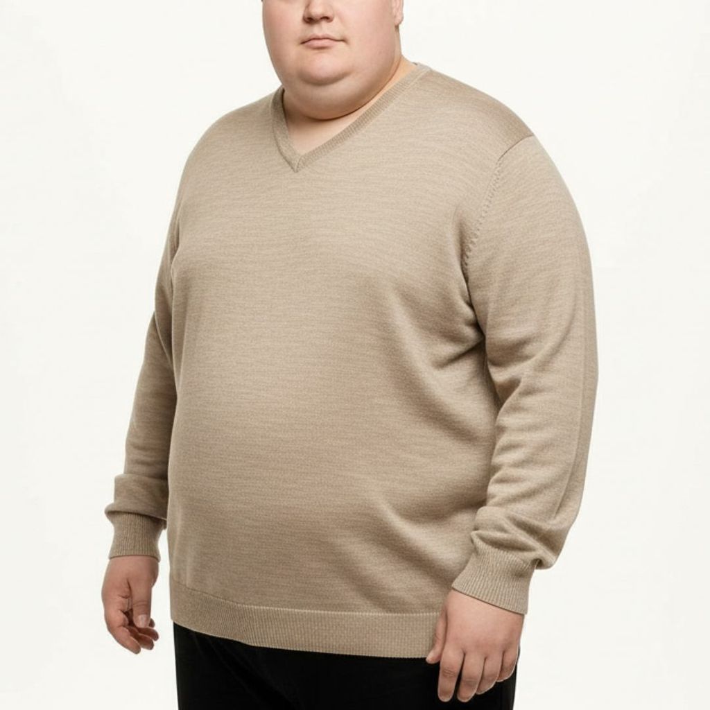 Şık ve sıcak tutan %50 yün %50 akrilik V yaka erkek triko kazak. 3XL-6XL büyük beden aralığıyla rahat kalıp ve kaliteli dokusuyla konforlu kullanım sunar.
