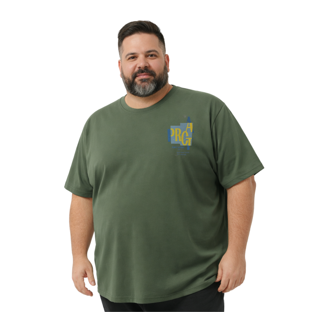 Vizon renk, baskılı bisiklet yaka kısa kollu büyük beden erkek tişört. Günlük kullanım için rahat ve konforlu.